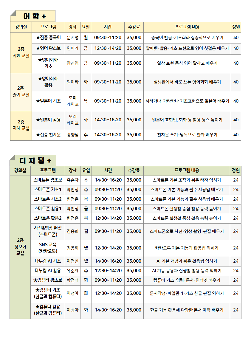 배움누림 아카데미(정규) 프로그램은 연간 교육 운영계획에 따라 상·하반기 정기적으로 개설됩니다.